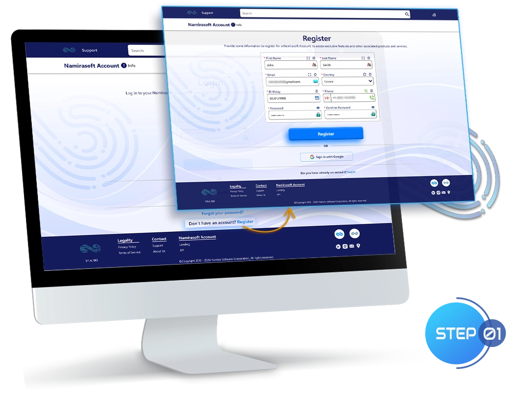 To get started, Register your account by providing your basic details and contact information, then creating a secure password. This sets up your Namirasoft Account, which you’ll use to access all Namirasoft products.