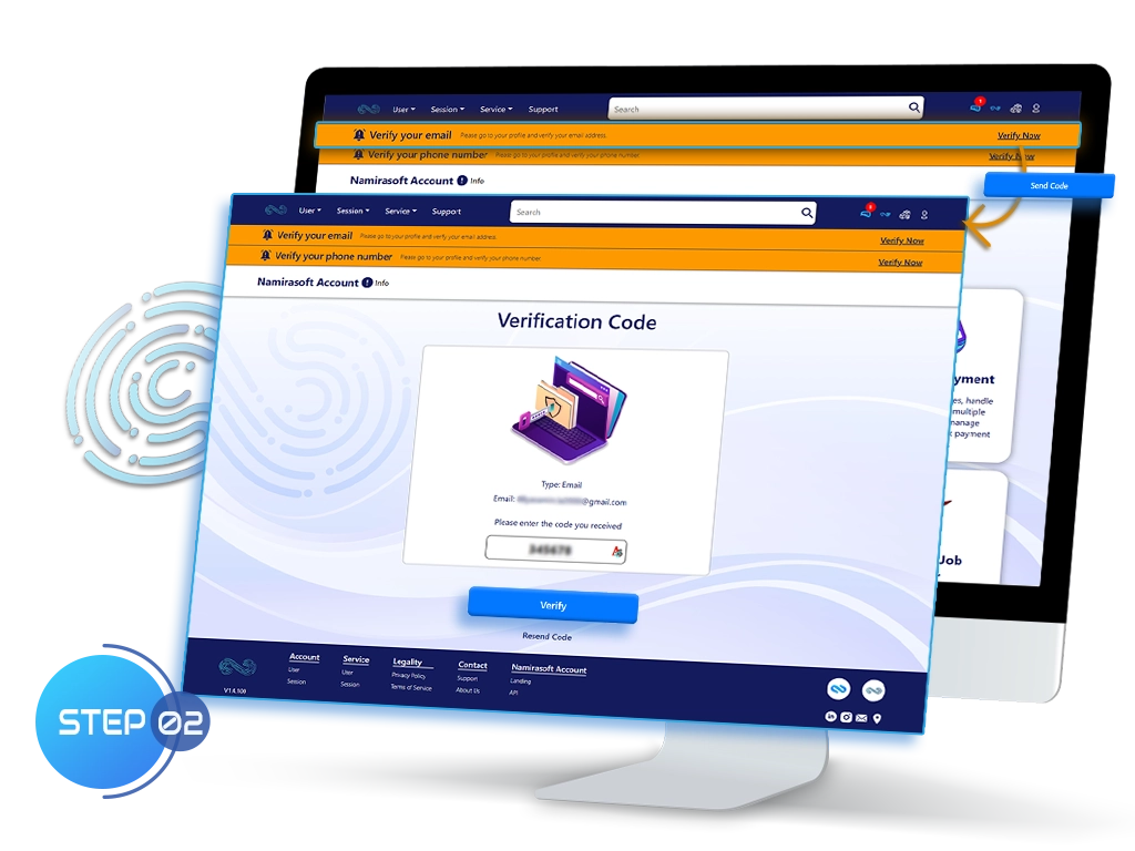 Email verification is required to activate your account and access Namirasoft products. After registering, tap the Send Code button in your account console to receive a verification code in your email. Enter this code to confirm your email and enable access.