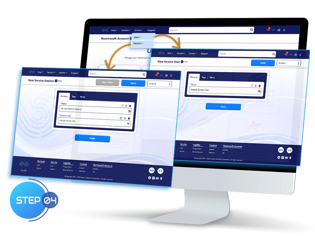 After creating a Service Session linked to your Service User, you will receive a Token that your automation tools use to access Namirasoft APIs securely.