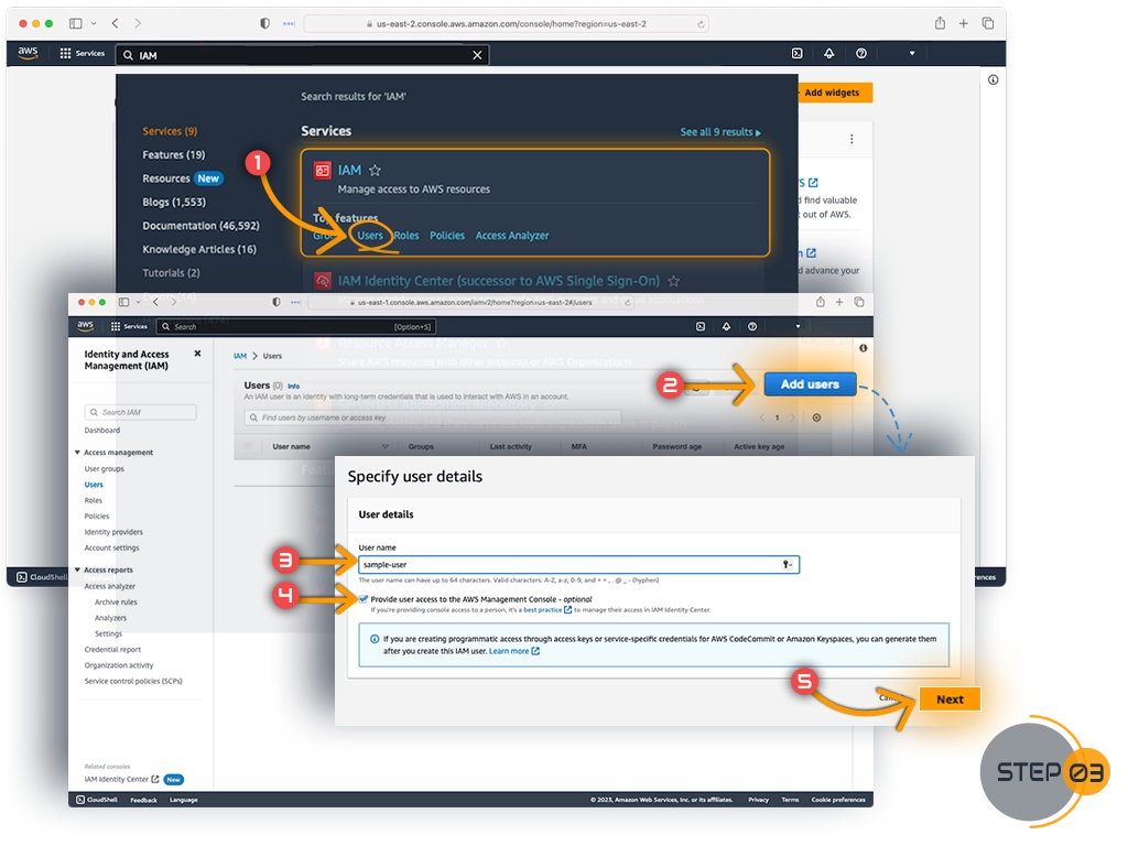 1. 1. In the IAM dashboard, click Users from the left menu.