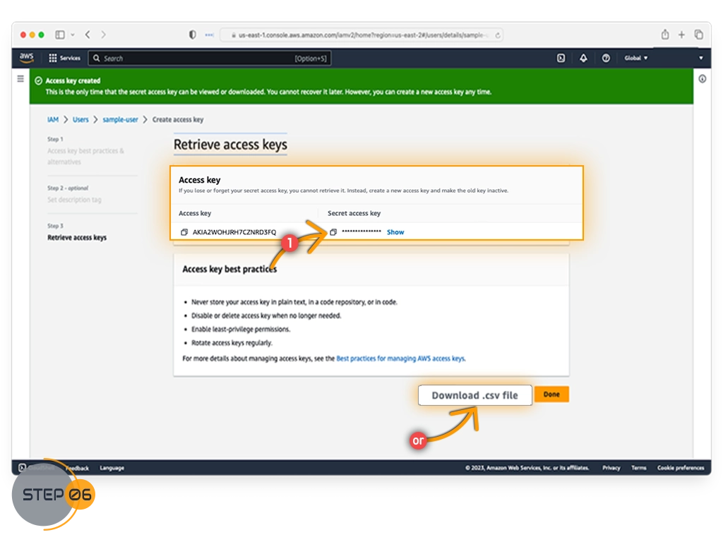 ⚠️ Important: The Secret Key is displayed only once. Download the .csv file or copy the keys and store them safely.