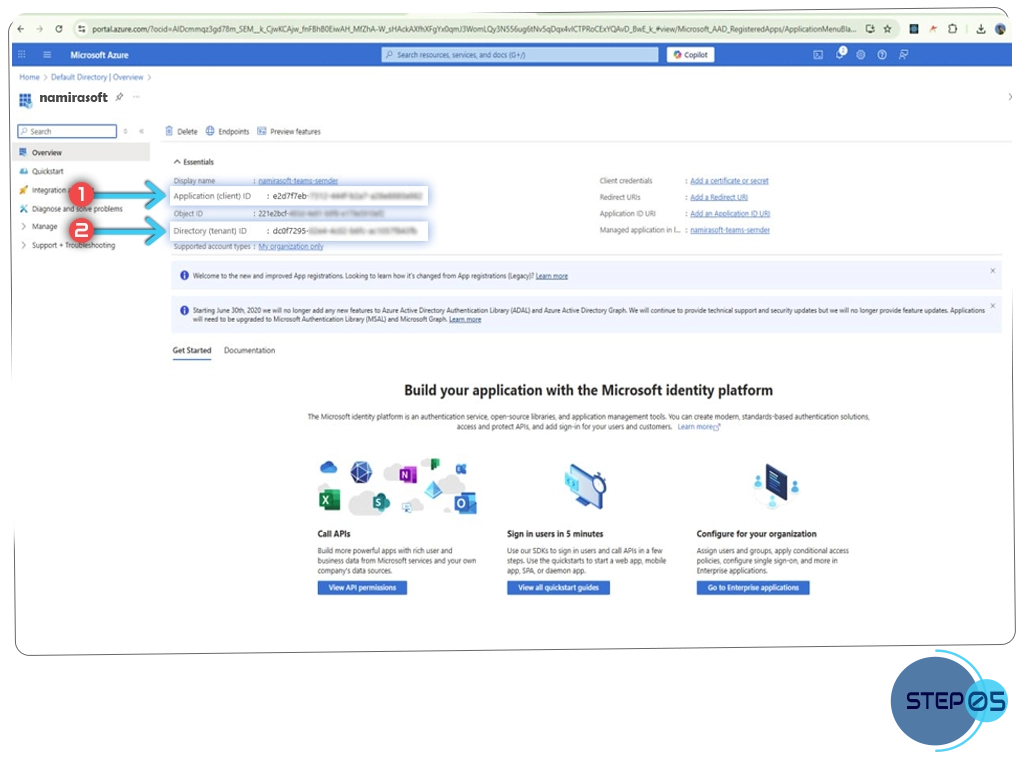 Step 5: Copy Client ID and Tenant ID
