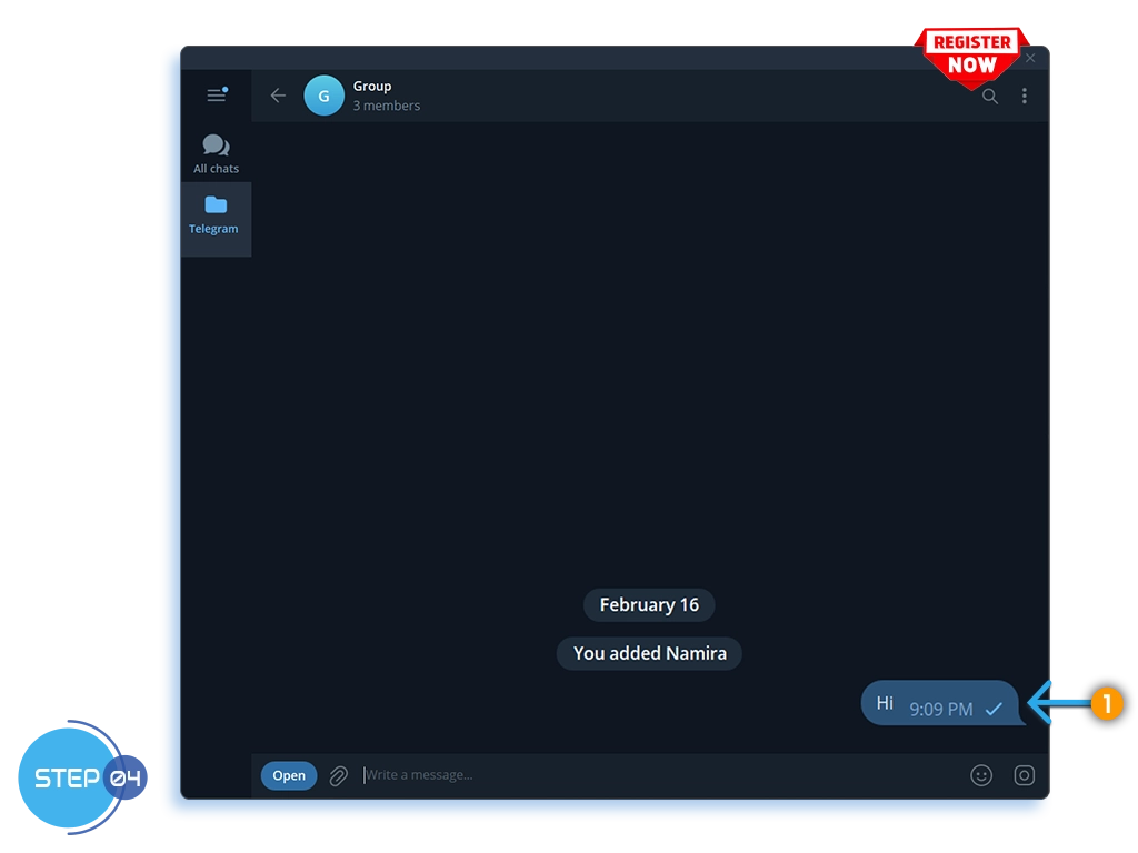 In the chat (private, group, or channel), send any text message.